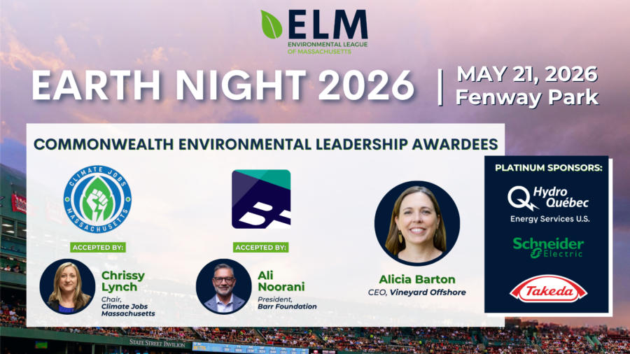 At Earth Night 2026, we will celebrate ELM’s ongoing work to drive effective climate leadership, as well as present the 2026 Commonwealth Environmental Leadership Awards. We will honor two organizations and one individual advancing Massachusetts toward a resilient clean energy future: The Barr Foundation, accepted by the President of the Barr Foundation, Ali Noorani; Climate Jobs Massachusetts, accepted by the Chair of Climate Jobs Massachusetts, Chrissy Lynch; and Alicia Barton, CEO of Vineyard Offshore.