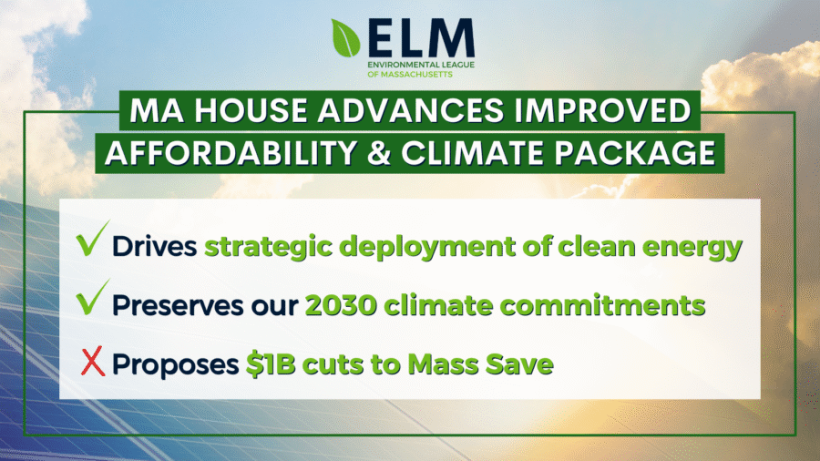 “This bill is stronger because of sustained climate advocacy from ELM, our partners, and our supporters,” said Amy Boyd Rabin, Vice President of Policy and Regulatory Affairs at the Environmental League of Massachusetts. “We thank the many Representatives who fought for smart, win-win solutions on climate and affordability and we appreciate how responsive our elected officials have been to their communities throughout this process. Now we turn our attention to the Senate, where we look forward to building support for proven programs like Mass Save, which save residents billions of dollars.”